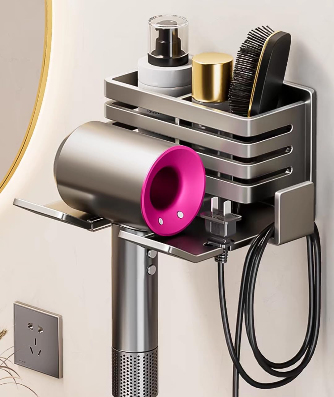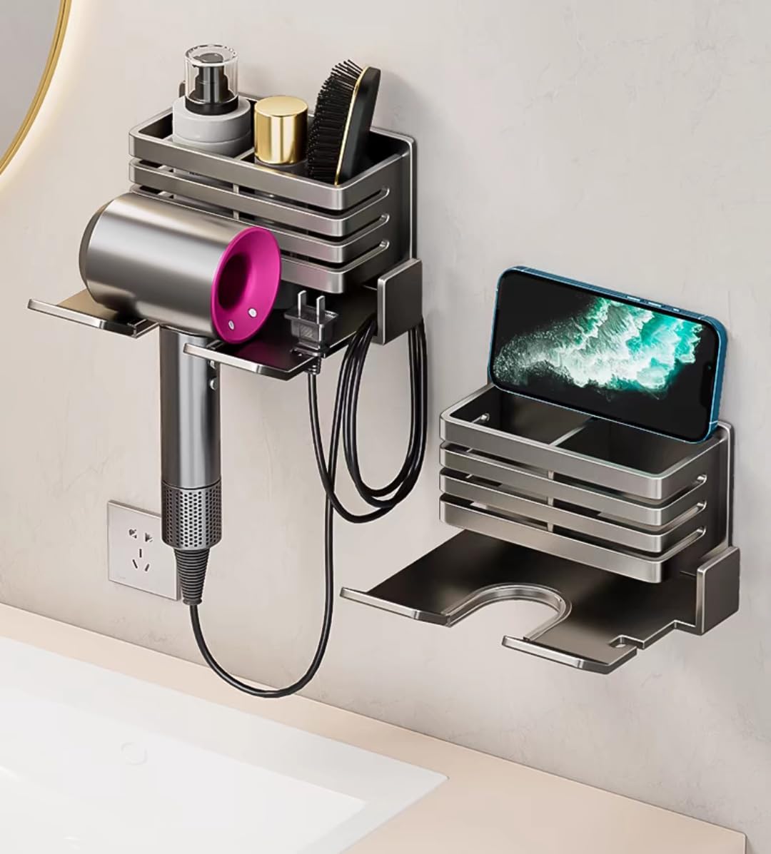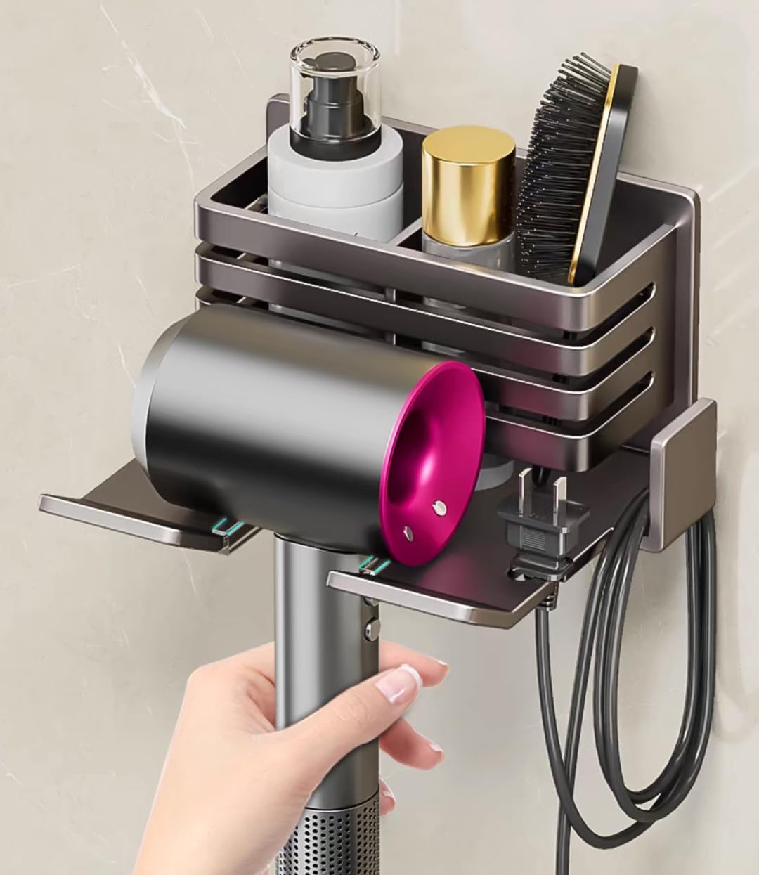 KAIXUANMAN ドライヤーホルダー マグネット ドライヤー掛け 壁掛けドライヤースタンド ドライヤー置き 収納ボックス付き バス用品 (グレー)