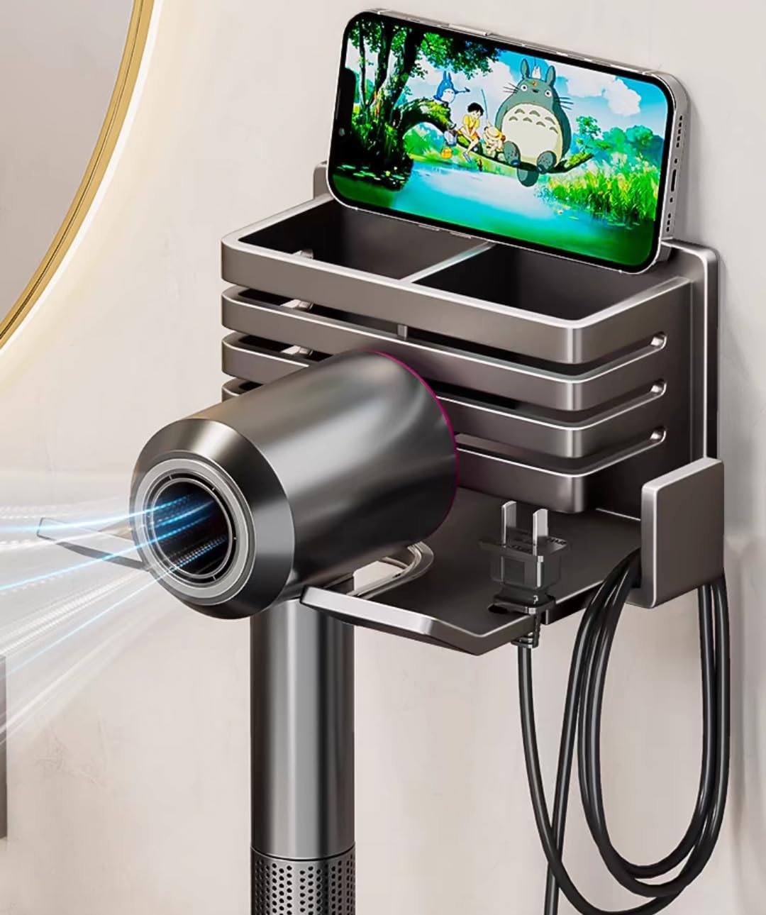 ドライヤーホルダー ドライヤースタンド 360自由回転 ドライヤーホルダー 強力粘着 ドライヤー収納 防錆 ハンズフリードライヤー 洗面所 ドライヤーホルダー 壁掛け グレイ ダイソン ドライヤー スタンド 両手解放 ドライヤー ハンズフリー (灰)
