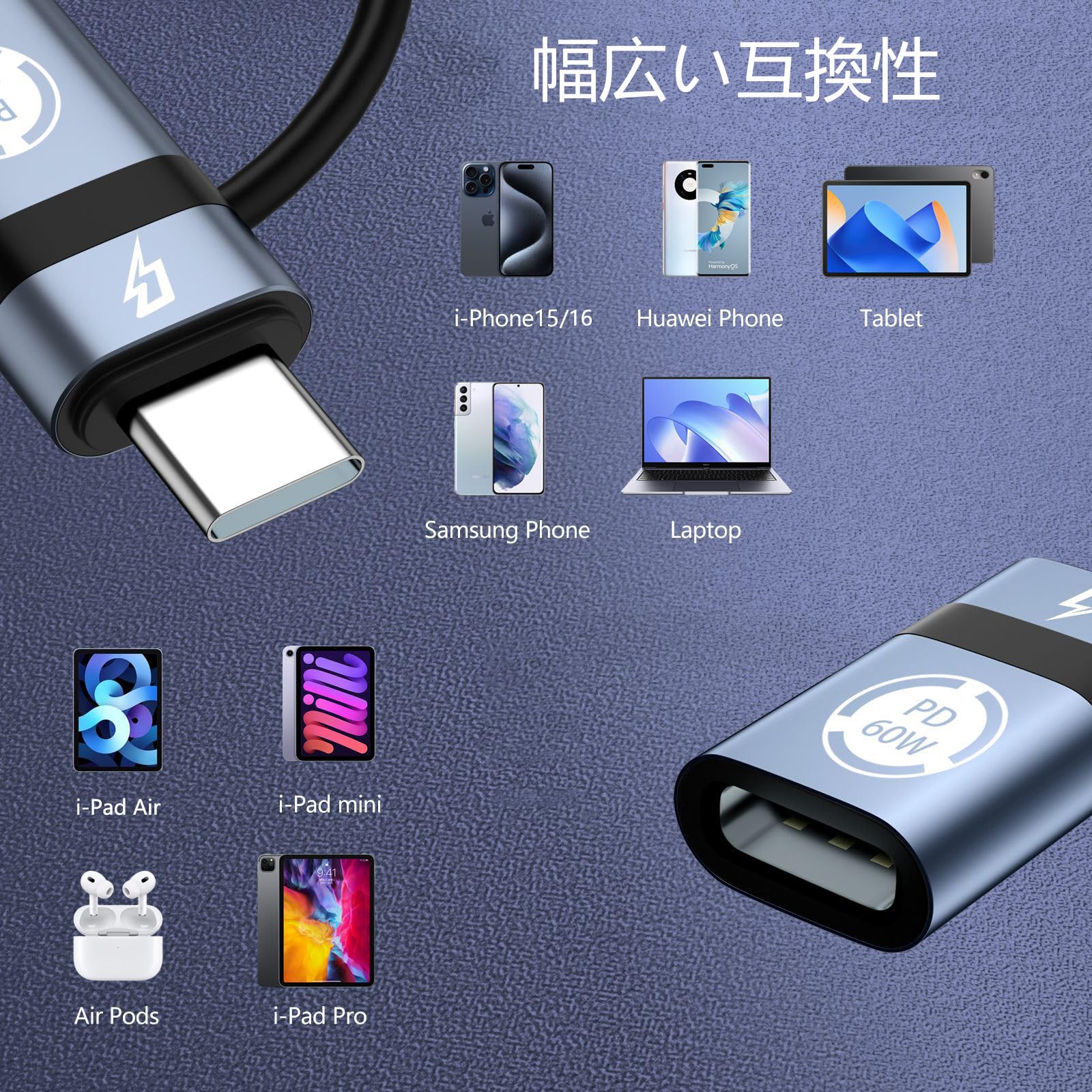 USB Type-C 変換アダプタ 3個セット USB 3.0 5Gbps Type C メス to USB オス 変換アダプター usb c to a QC3.0 急速充電 高速データ転送 が対応可能 iPhone 16 15 14 13 12、Airpods iPad 10 Air、Samsung Galaxy Typeタイプ CからUSB A充電器プラグケーブルコンバータ