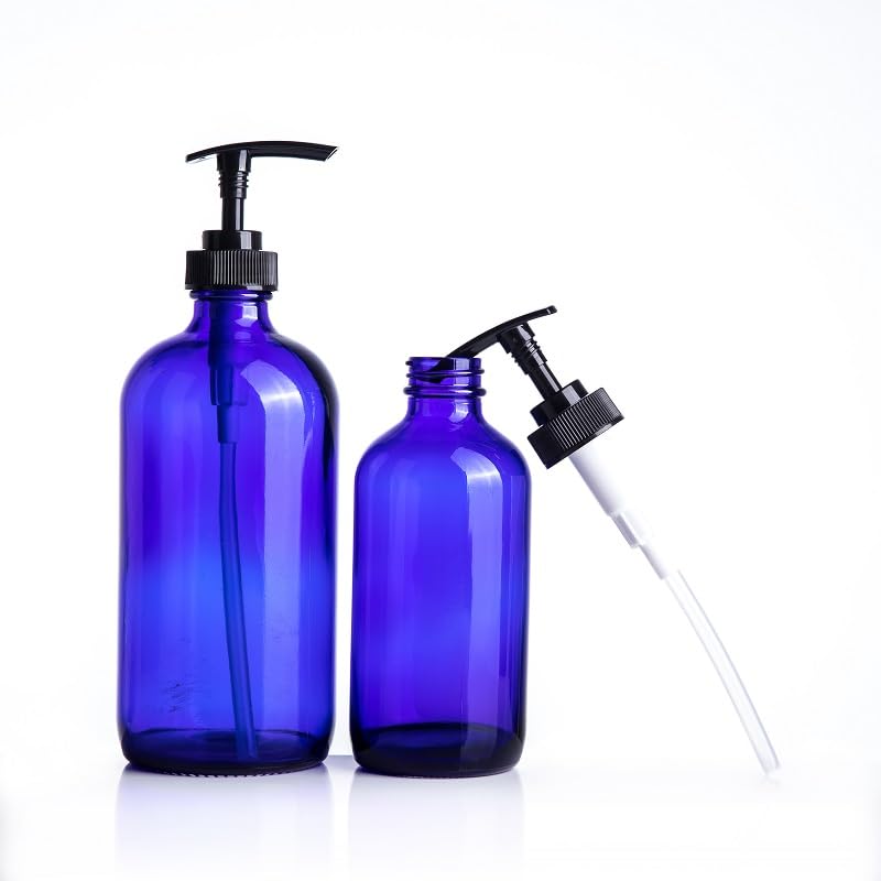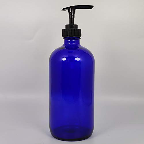 NKK 500ml 乳液ポンプボトル (2本セット) ガラス遮光ディスペンサーポンプ ボトル シャンプー・化粧品詰め替え用 (青色)