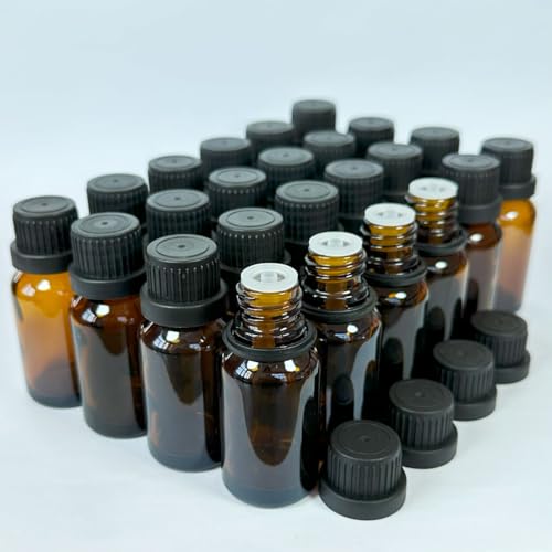 NKK 15ml 遮光ガラス瓶 (24本セット) ドロッパー&スポイト付き - エッセンシャルオイル、アロマオイル、香水などの保存に (茶色)