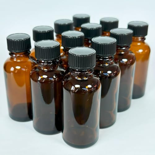 NKK 遮光ガラスボトル 30ml (12本セット) 黒色キャップ付き エッセンシャルオイル・アロマオイル・香水保存用 小分けボトル (茶色)