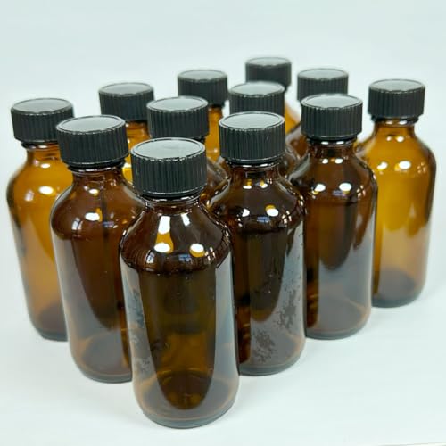 NKK 遮光ガラスボトル 60-50ml (12本セット) 黒色キャップ付き エッセンシャルオイル・アロマオイル・香水保存用 小分けボトル (茶色)