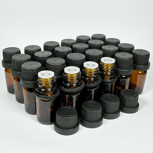 NKK 5ml 遮光ガラス瓶 (24本セット) ドロッパー&スポイト付き - エッセンシャルオイル、アロマオイル、香水などの保存に (茶色)