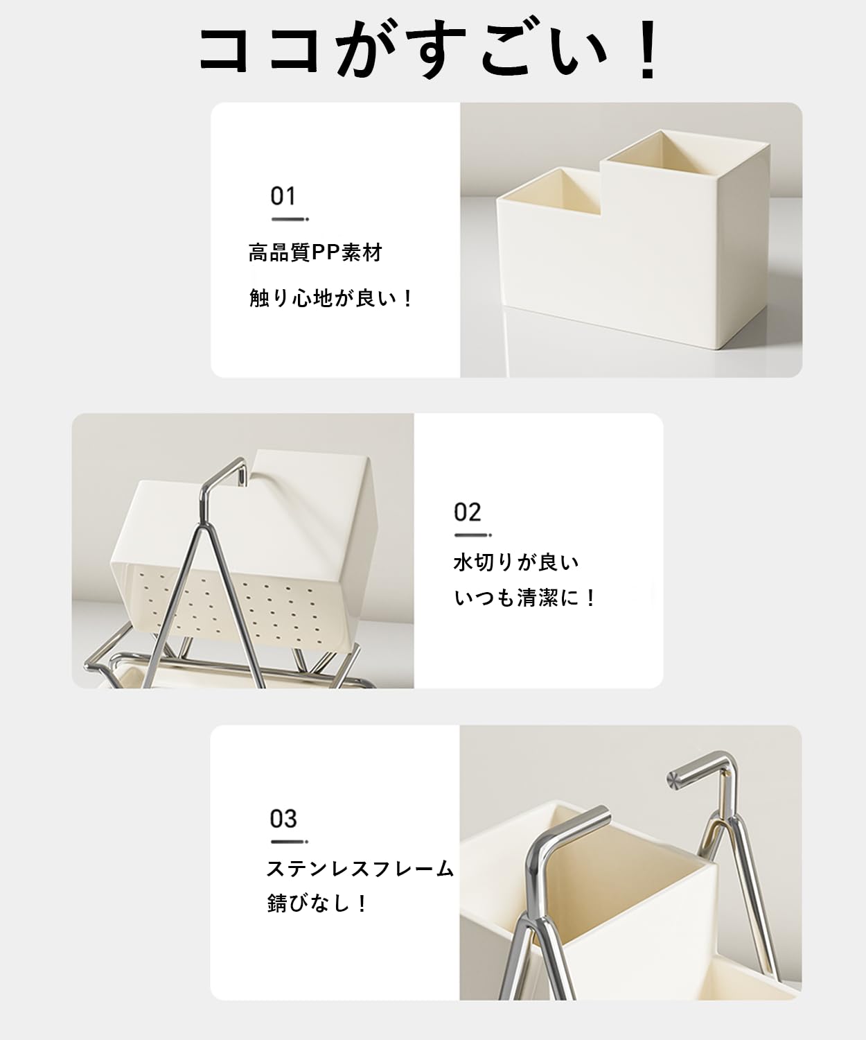 箸立て 箸入れ カトラリースタンド キッチンラック 長さ20 cm 幅10 cm 高さ18 cm 食器収納 水切り ラック ステンレス製 サビにくいデザイン 壁掛け 移動式フック付き 省スペース