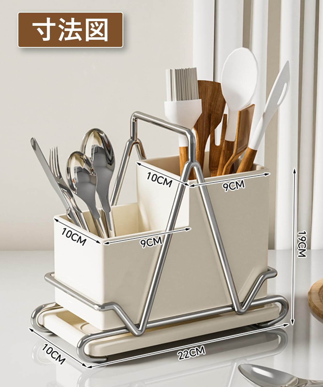 OUXEE 箸立て 水切り 箸入れ フォーク水切り - おしゃれ 丈夫 カトラリースタンド トレイ付 優れた安定性 キッチンツールスタンド