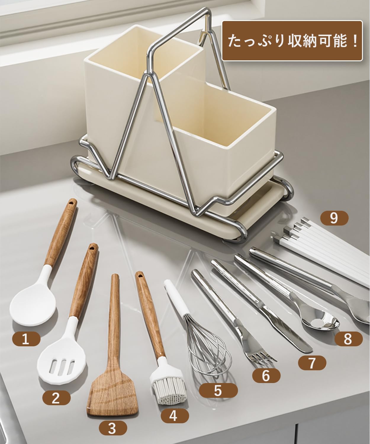 箸立て はしたて 箸置き 箸入れ スプーンラック フォーク収納 おしゃれ キッチン収納 キッチンツールスタンド (ホワイト)
