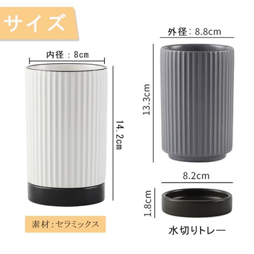 ELECTRO-WEIDEWORLD 箸立て おしゃれ 陶器製 箸スタンド 箸水切り お箸・スプーン・フォーク収納 キッチン箸立て ツール立て キッチン カトラリー スタンド 食器 調理器具 キッチン収納 (2個セットC(白+灰色))