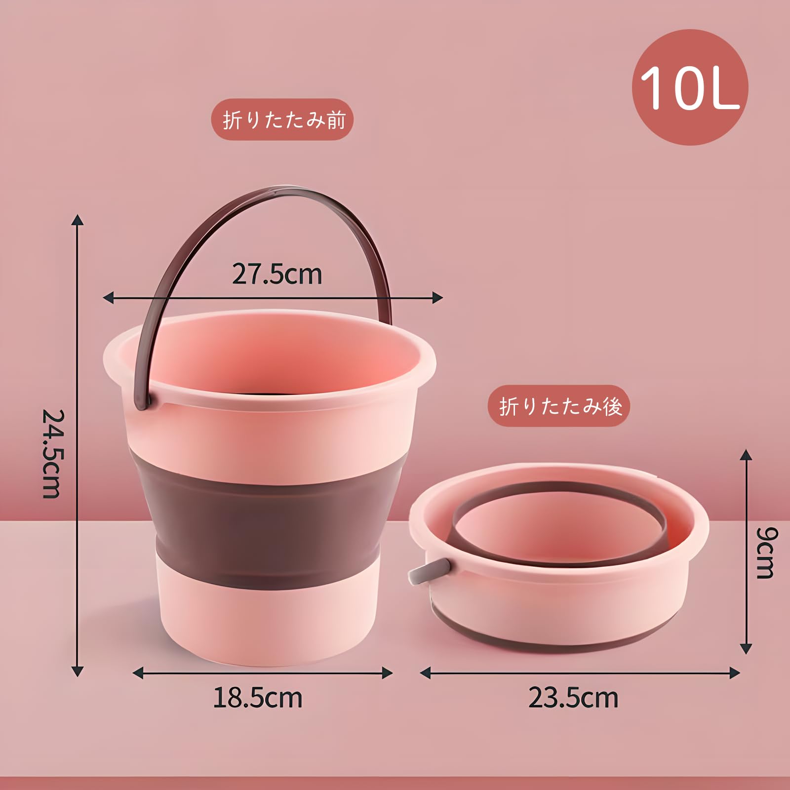 Gorocking 折りたたみ バケツ 5L/10L/17L 4色 掃除 洗濯 洗車 足湯 釣り (ピンク, 10L)