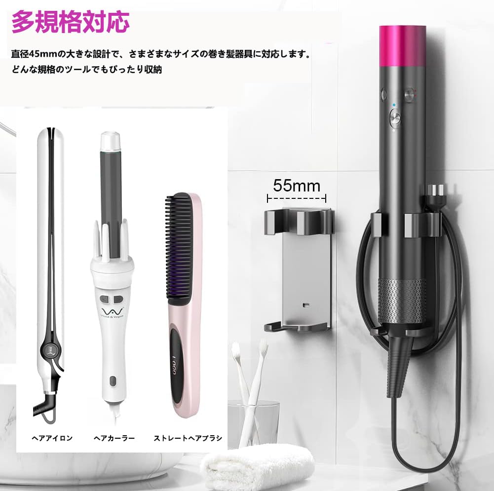 YUET ヘアドライヤーホルダースタンド 超音速ヘアドライヤー ヘアドライヤー エアラップ用 アルミニウム合金スタンド 電源プラグホルダー バスルームオーガナイザー ケアツール マグネットスタンド (グレー, 3穴)