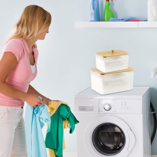 2個 洗剤ストッカー 洗剤ケース ジェルボール 容器 洗濯ボール収納 洗濯洗剤ボールストッカー ジェルボール 竹製ふた ボックス ランドリー ポッド ボックス 収納 バスケット 冷凍庫 オーガナイザー ビン パントリー 収納 ボックス 蓋付き 再利用可能 キャビネット 透明 積み重ね可能 収納