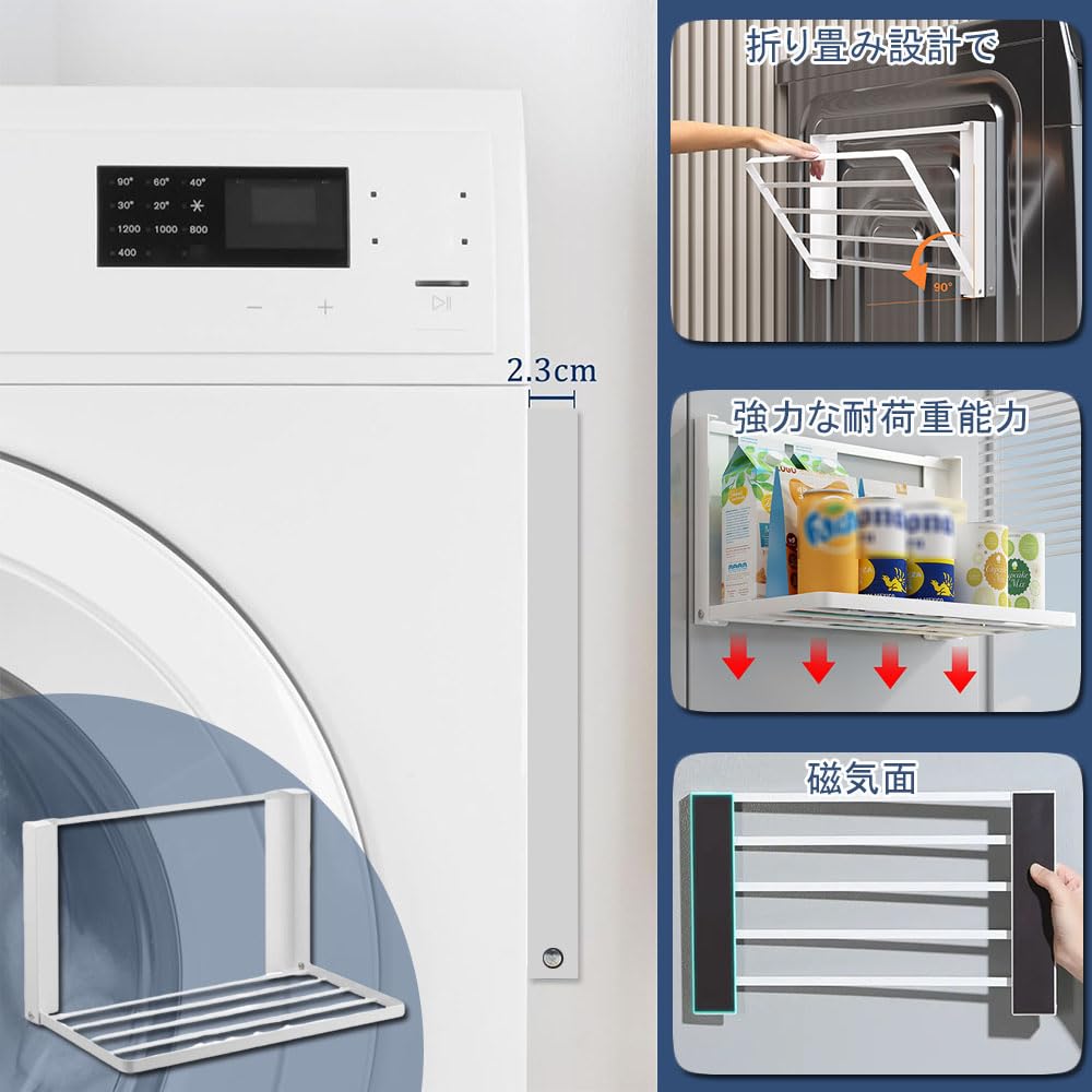QYONLINE 洗濯機横 マグネット 折り畳み棚 洗濯機 ラック マグネット 収納 ランドリーラック 洗濯機収納ラック ホワイト 洗濯機横マグネットラック ランドリーラック 浴室 洗面所 タオル置き 省スペース 磁石 折りたたみ 棚 マグネット 収納