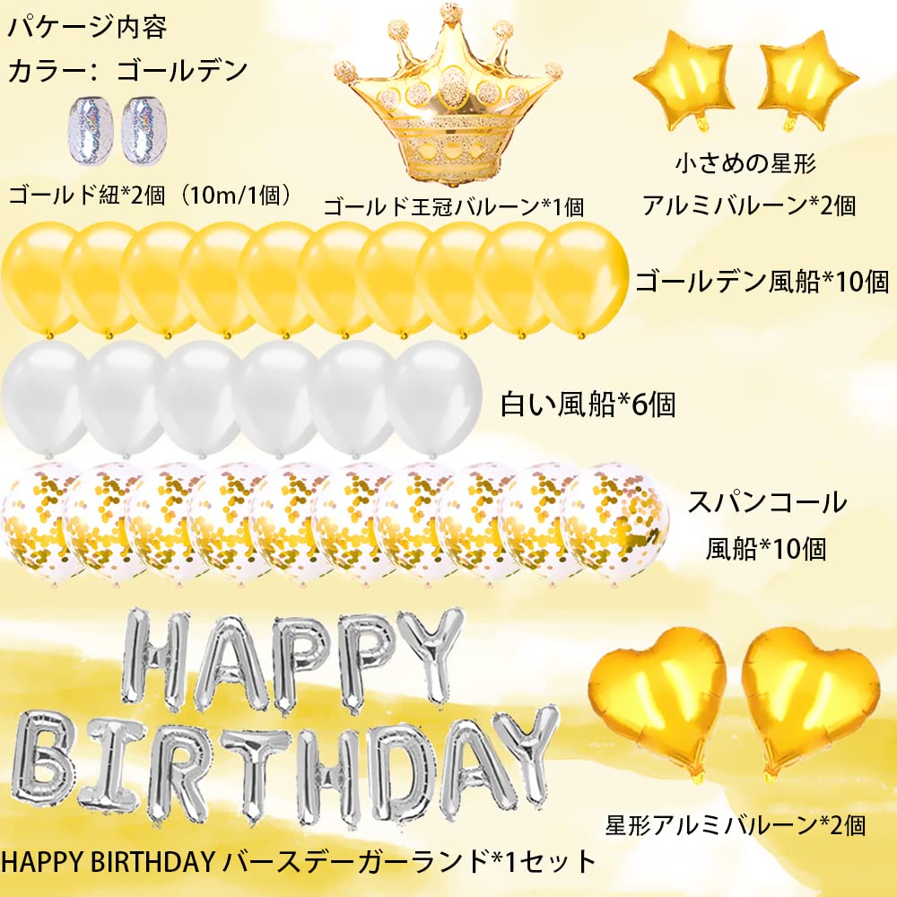風船 誕生日 飾り付け セット (45点) happy birthday バルーン バースデー バルーン ゴールド 王冠 風船 男女兼用 【G&H】