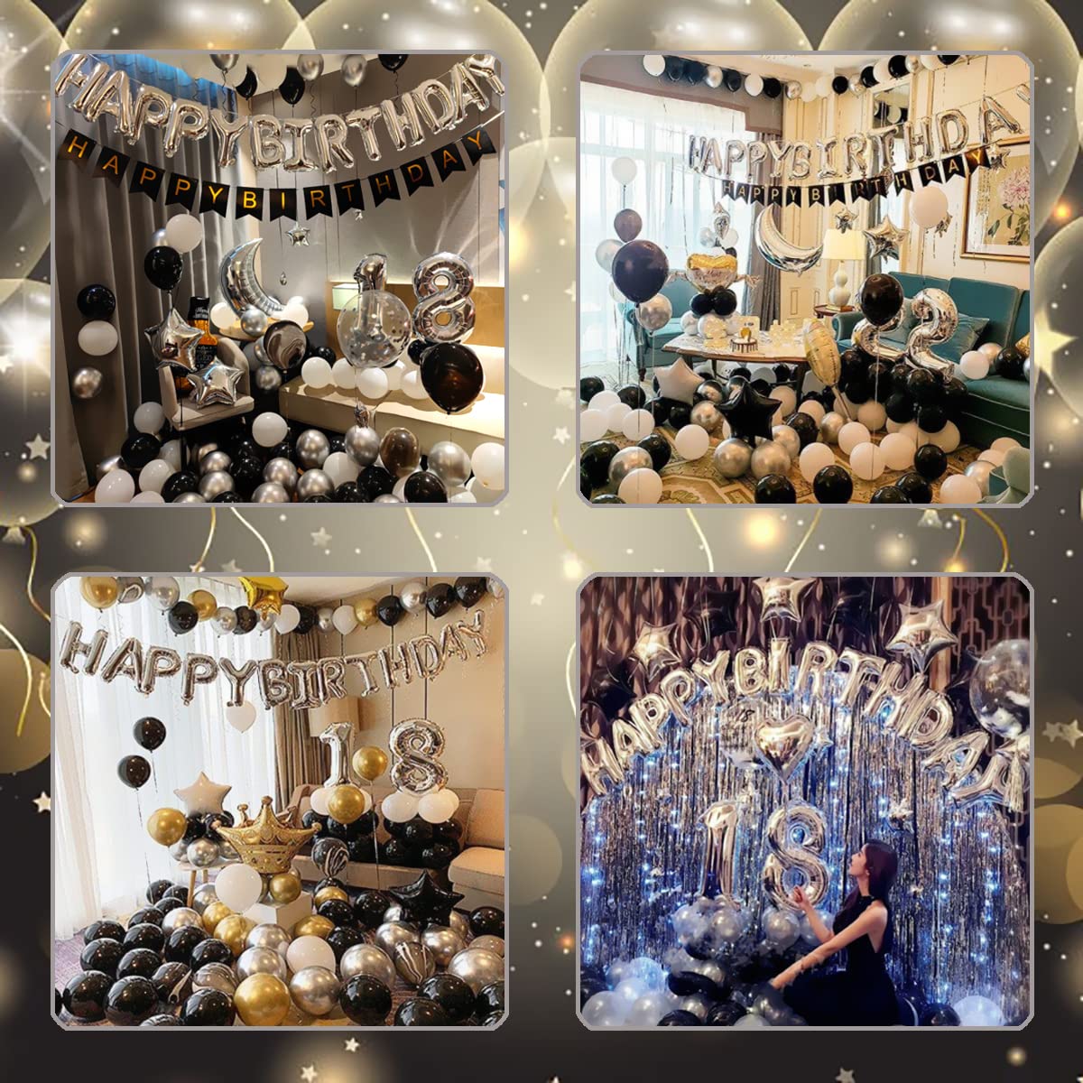 G&H 誕生日 バルーン 飾り付け セット ハッピーバースデー バルーン happy birthday バースデー バルーン ゴールド 王冠 風船 バースデー 飾り シルバー&ブラック