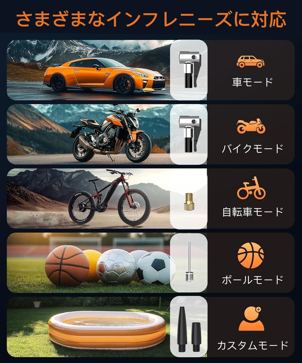 ZGZUXO電動空気入れ 自転車空気入れ エアーポンプ 空気入れ 電動【2024年新型·10秒充填 】 コードレス Type-C充電式 LEDライト 大型LCD表示 空気圧指定可 5モード選択 電動くうきいれ バイク用空気入れ 自転車 空気入れ 電動 自動停止 4種単位換算 仏式 米式 バルブ対応 エアコンプレッサー車 自転車バイク タイヤ 浮き輪ボール対応