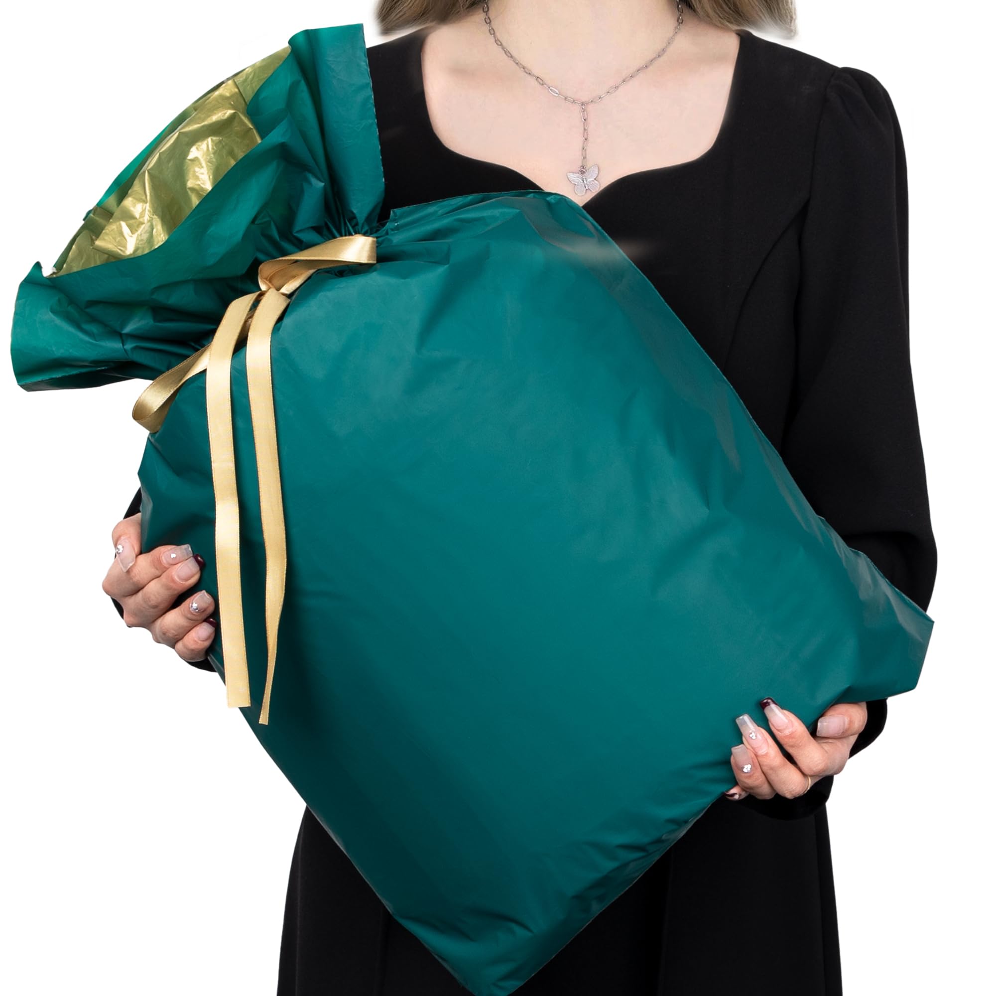 ラッピング 袋 大きい プレゼント 大 【XL特大サイズ・バイカラー・様々なシーンで活躍】 巾着袋 ギフトラッピング 贈り物 プレゼント用 包装袋 バレンタイン 誕生日 ギフト ギフトバッグ ギフト袋 ラッピング用品 可愛い グリーティングカード付き (巾着袋XL(ダークグリーン))