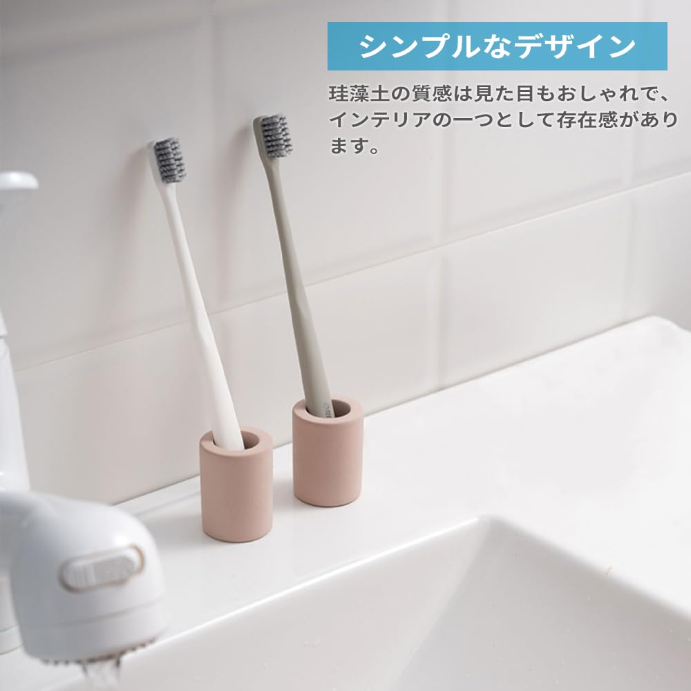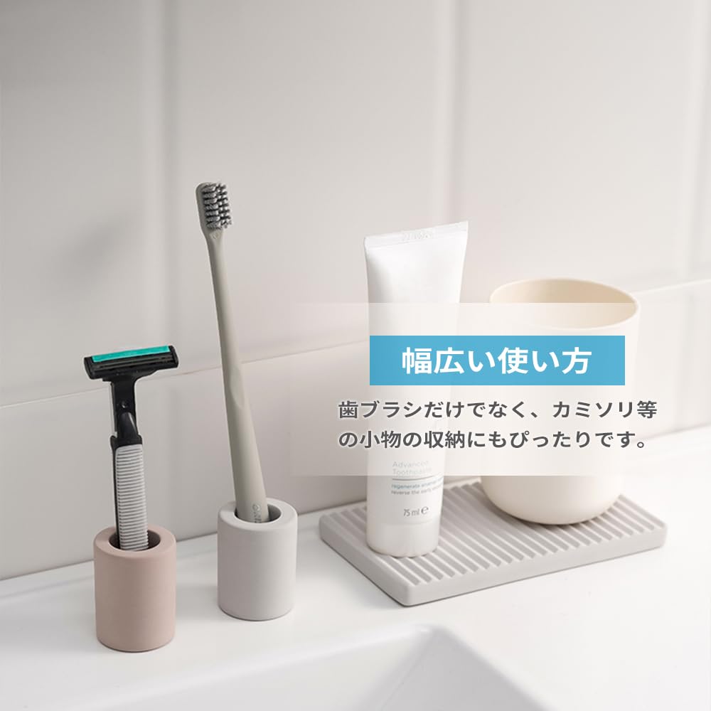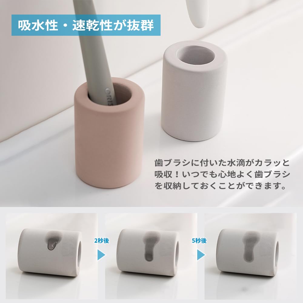IRETION 歯ブラシスタンド 珪藻土 歯ブラシホルダー 歯ブラシ立て 歯ブラシ置き ノンアスベスト 吸水 速乾 防カビ おしゃれ Sサイズ 2個入り (ダークグレー)