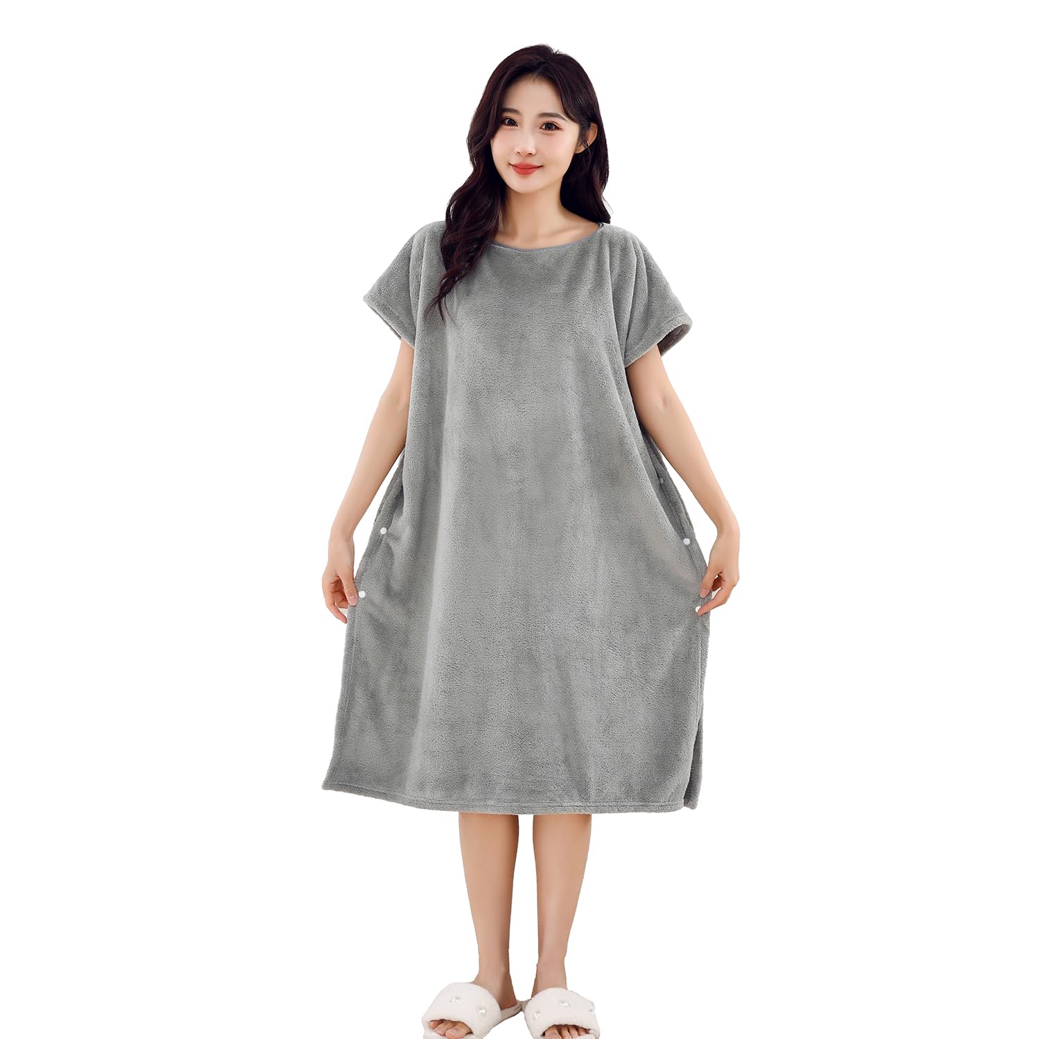 Etech ラップタオル 80cm丈 巻きタオル 大判 無地 吸水 柔らかい ふわふわ もこもこ お風呂上がり プールタオル マイクロファイバー バスタオル (グレー)