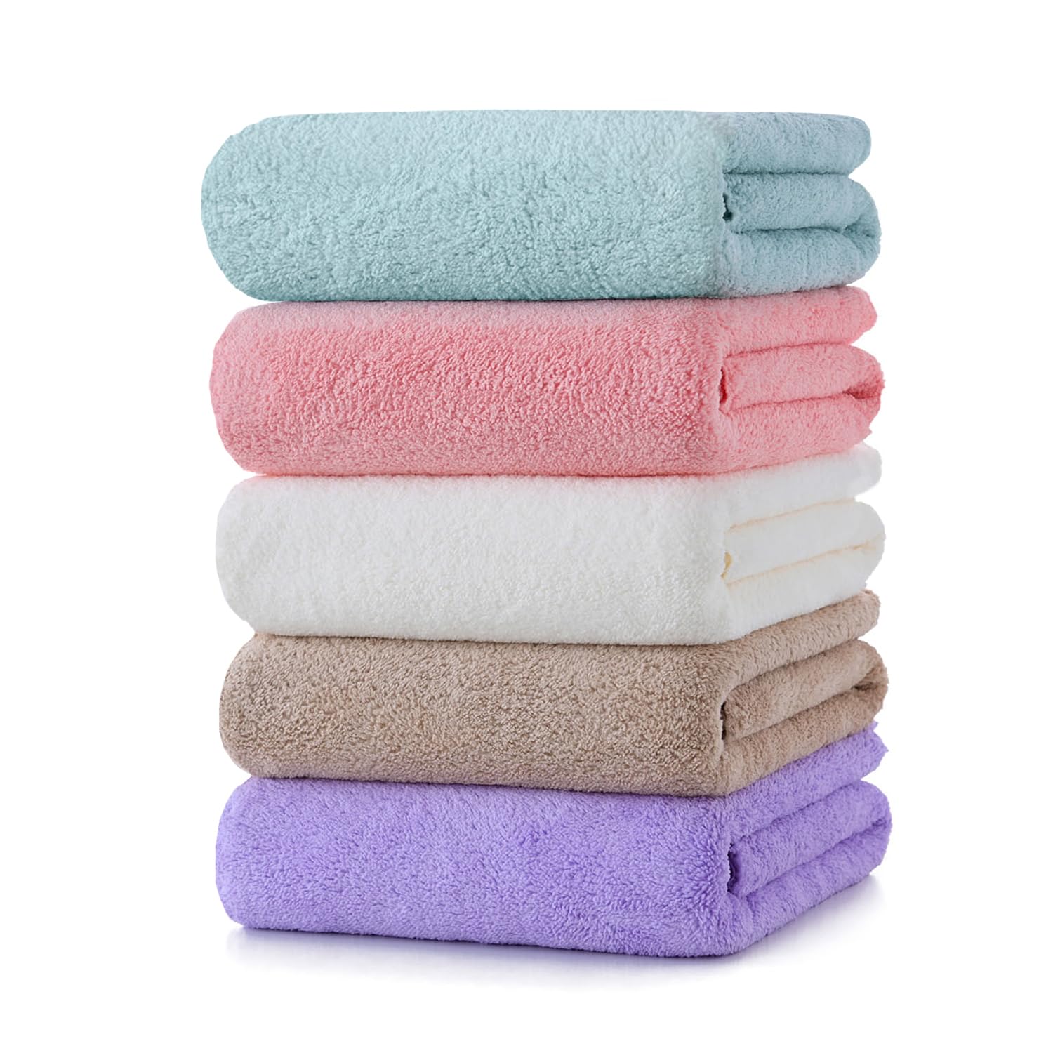 バスタオル マイクロファイバー 大判 5枚セット タオル 約60×120cm 吸水はやい ふわふわ 肌に優しい 柔らかい 抗菌防臭 毛羽落ちしない 風呂上がり 家庭用 プレゼント(5色)