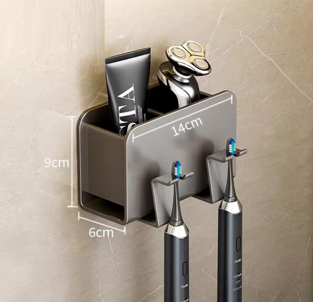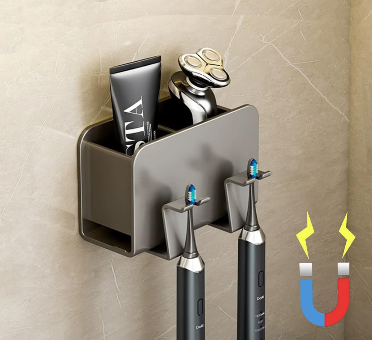 KAIXUANMAN マグネット 歯ブラシホルダー 電動歯ブラシスタンド マグネット 歯ブラシ立て 電動歯ブラシホルダー チューブスタンド ハミガキ 一括収納 多機能 バスルーム 浴室収納 2連 グレー