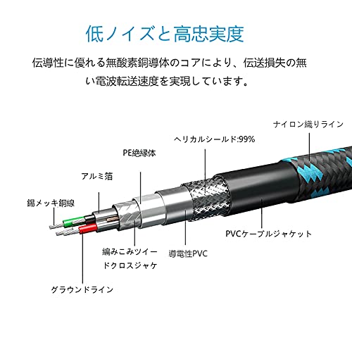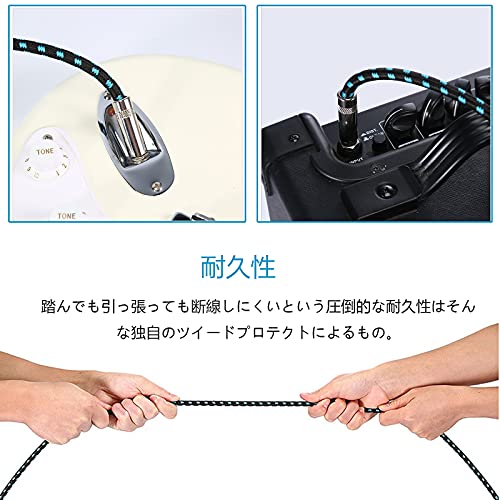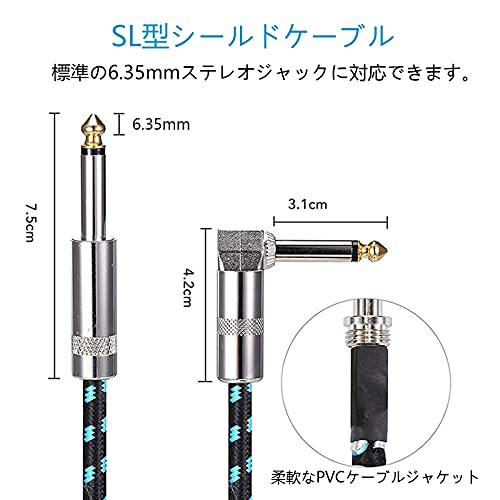 【耐久性と耐摩耗材質】シールドケーブルは編組ナイロンを採用しており、断線や接続不良は起こらないよう工夫してきて、長年にわたって曲げ損傷や劣化を防ぎ、耐久性抜群を実現。 【幅広い互換】 オーディオケーブルは6.5 mmケーブルまたは6.35 mmケーブルとも呼ばれます。ミキサー、パワーアンプ、マイク、デコーダー、イコライザー、電子オルガン、エレクトリックギター、アコースティックギター、ベース、キーボード、ペダルエフェクト、電子ドラム、スピーカーやレコーディングスタジオ、スマートホームなどの電子機器の設置に適用します。 【圧倒的な高音質】コネクタと(内部)銅内装芯線を利用して、2重シールドに加えて外部干渉により強く、クリアで綺麗なステレオサウンドを生み出します。サビの防止に加え、長期間、最高の音質をお楽しみいただけます。 【L型のプラグ】シールド ベースの一方のプラグがL字型で、ねじれを防ぎ、平らな状態で簡単に接続できます。その以外に、方向を90度変え、狭い場所でも簡単に接続でき、省スペース化に役立ちます。