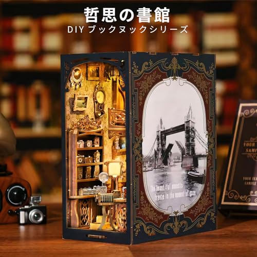 CRESYMME ドールハウス ミニチュア ブックヌック キット 木製 立体パズル DIY 手作り 大人向け USB給電式です(ソラの手芸店)