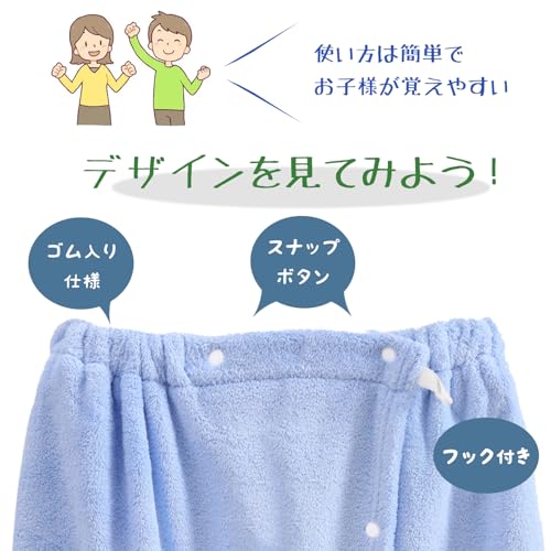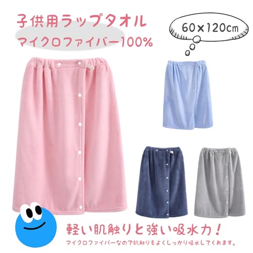 ラップタオル 子供用 60*120cm バスタオル 巻きタオル ずれ落ち防止 大判 吸水 速乾 マイクロファイバー お風呂 温泉 海 スイミング 男の子 女の子 着替え (スモーキーブルー)