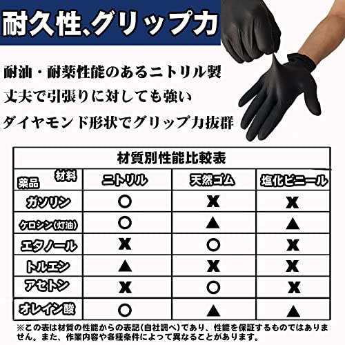 [TOPNBROT] ニトリルゴム手袋 エンジニアグローブ 100枚入 0.35mm 極厚手 再利用可能 丈夫 滑り止め ダイヤモンド型 强力グリップ力 油仕事 塗装 自動車整備 バイク整備 作業用