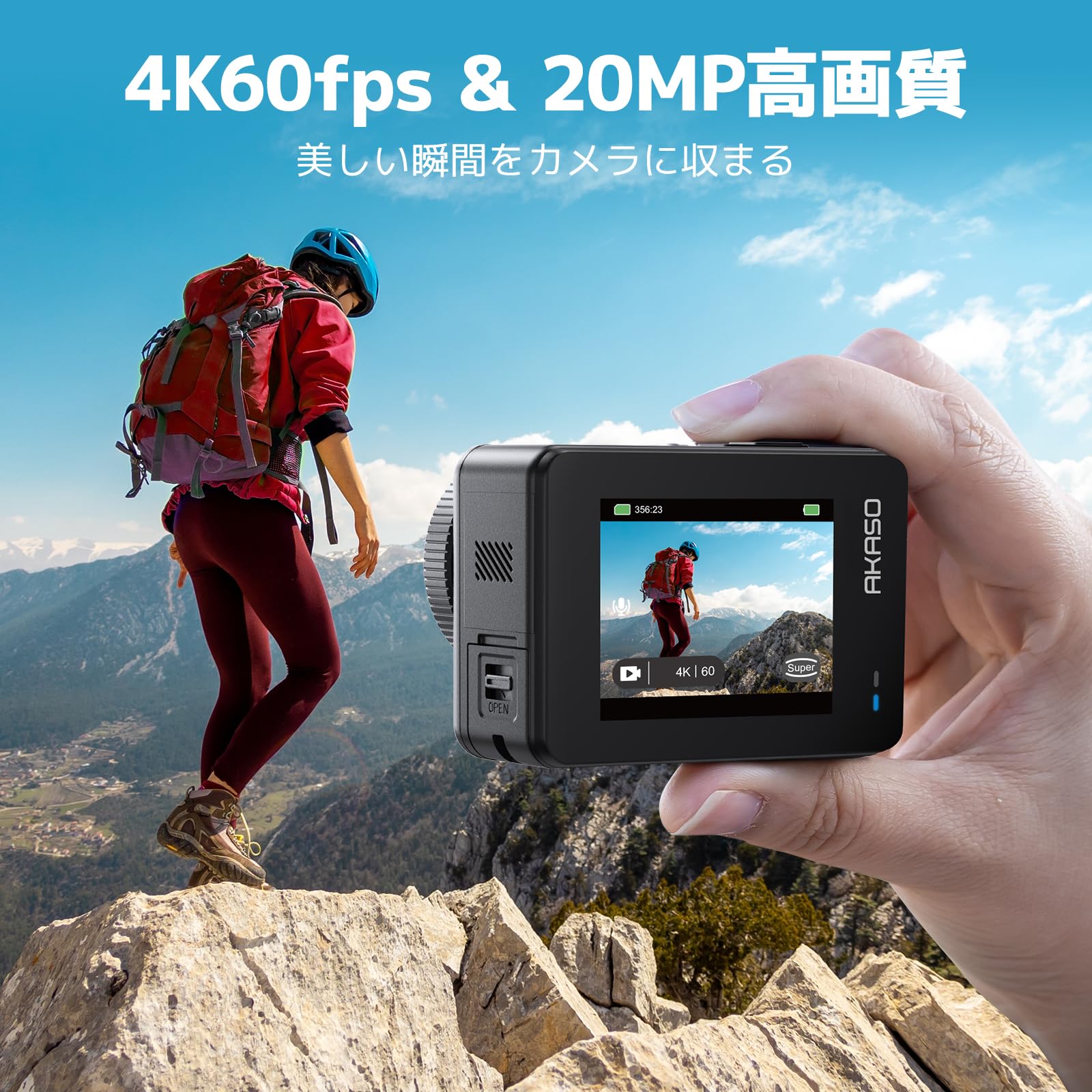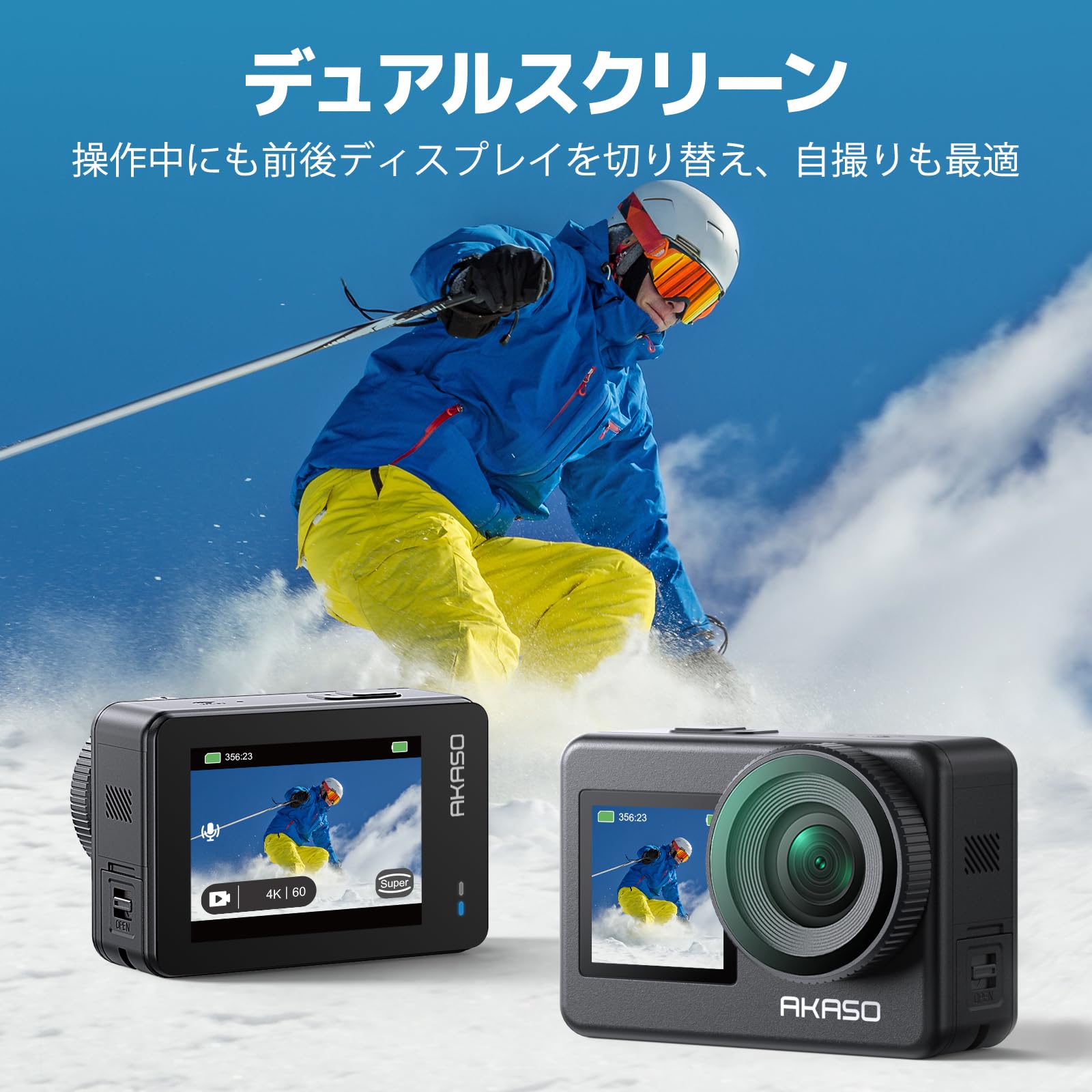 AKASO Brave4 アクションカメラ 4K30FPS デュアルスクリーン EIS手ブレ補正 40M防水 水中カメラ HDMI出力 アクションカム 小型 フローティングハンドグリップ付き