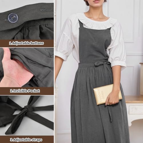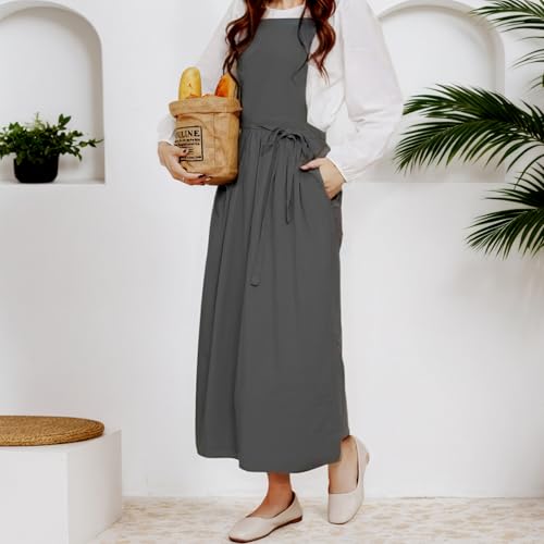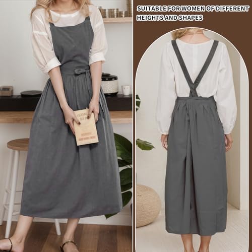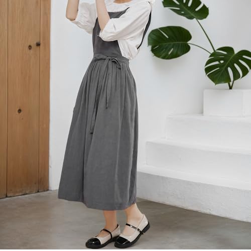 [Becanno] エプロン レディース おしゃれ コットン エプロンドレス 大人 保育士 無地 ポケット付き 後ろボタン止め レストラン、花屋、キッチン、カフェ、ガーデン、ペインティング用