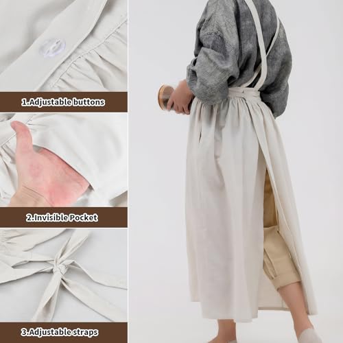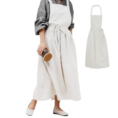 [Becanno] エプロン レディース おしゃれ コットン エプロンドレス 大人 保育士 無地 ポケット付き 後ろボタン止め レストラン、花屋、キッチン、カフェ、ガーデン、ペインティング用