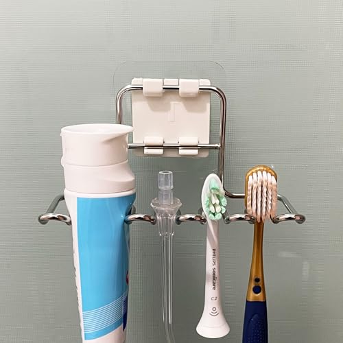 Poywaze 歯ブラシスタンド 歯磨き粉ホルダー ホワイト 歯ブラシホルダー ステンレス 歯ブラシ立て 吸盤 電動歯ブラシ スタンド